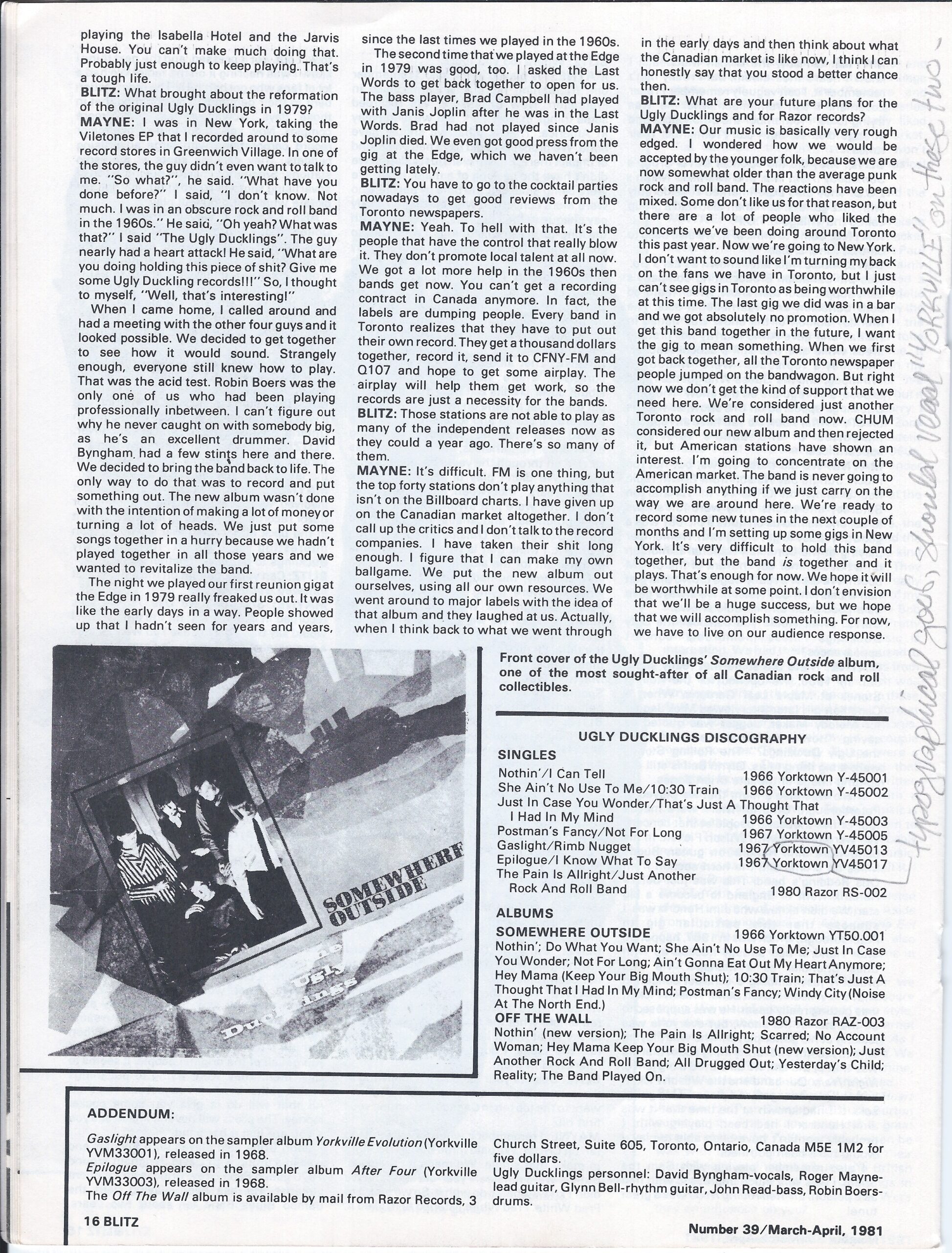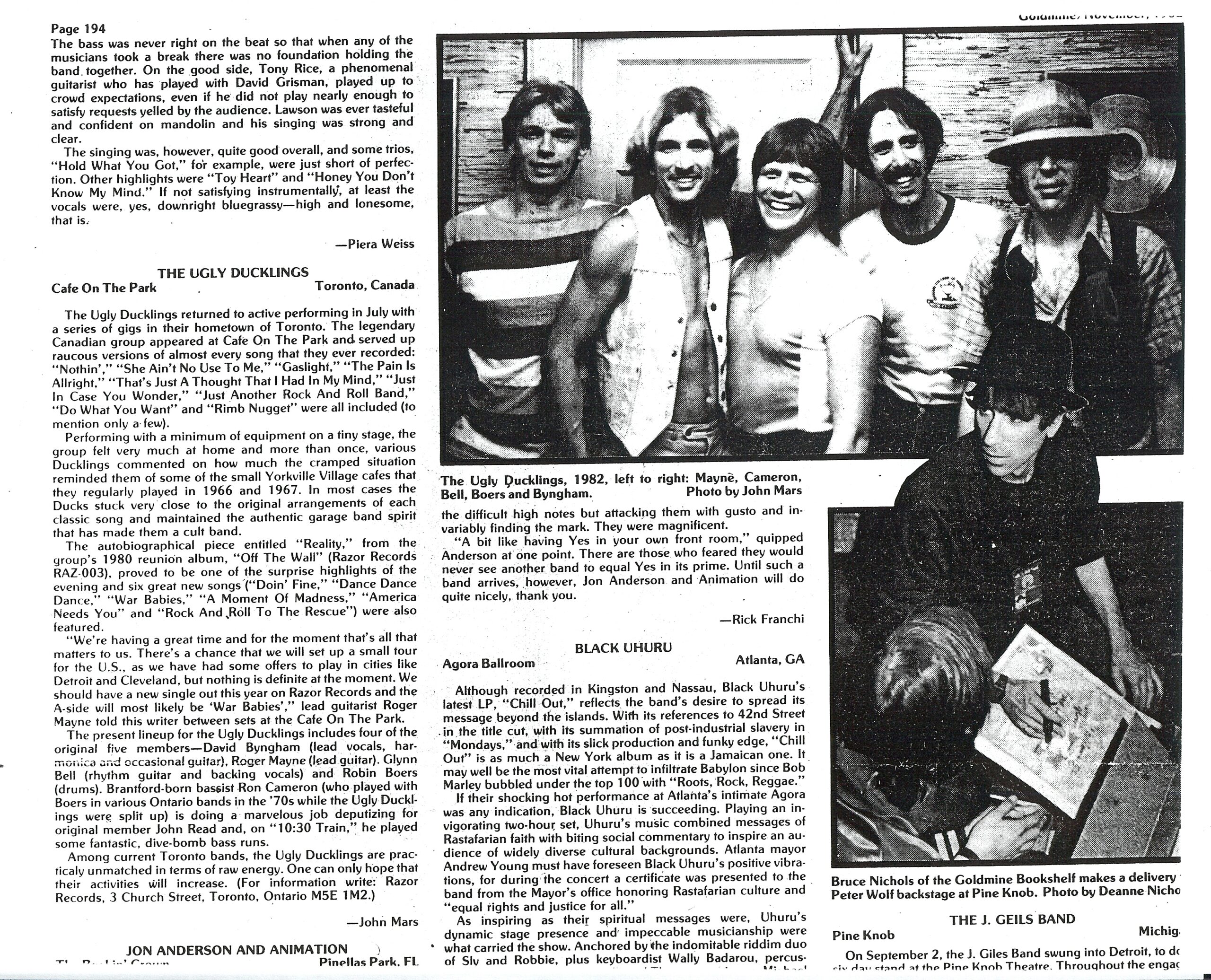 THE UGLY DUCKLINGS John Read. Roger Mayne, David Byngham, Robin Boers, Glynn Bell - Photo by Paul TIll 1980
